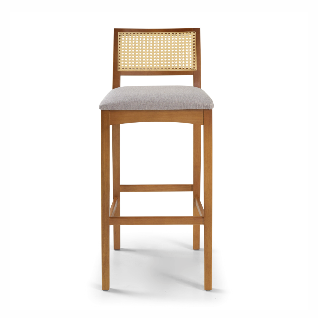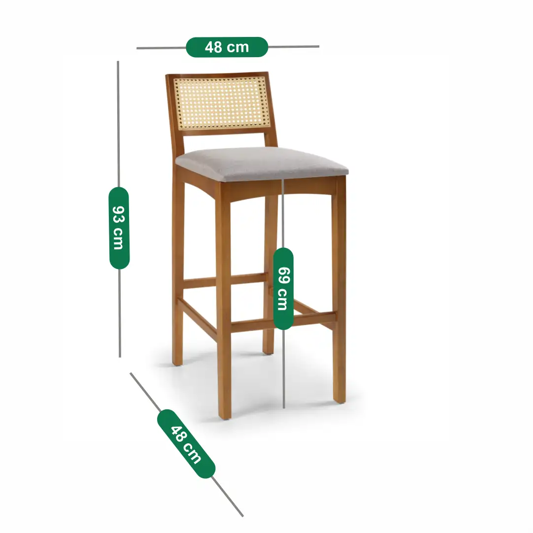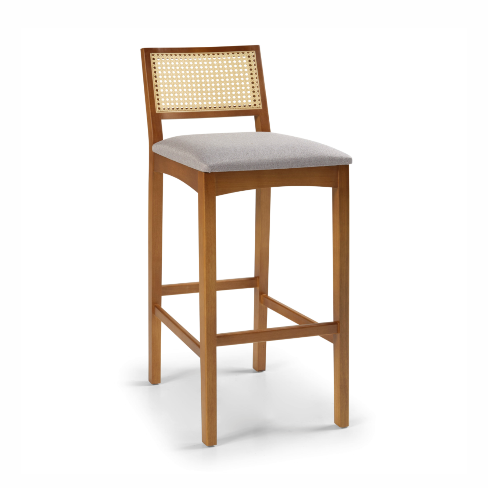 A Banqueta Suprema combina sofisticação e conforto, com estrutura em madeira maciça e acabamento em verniz PU fosco. O encosto em tela portuguesa trançada à mão agrega um toque artesanal único. Personalize a tonalidade da madeira e o revestimento para um estilo exclusivo. Traga elegância e funcionalidade para sua cozinha ou área de churrasco.