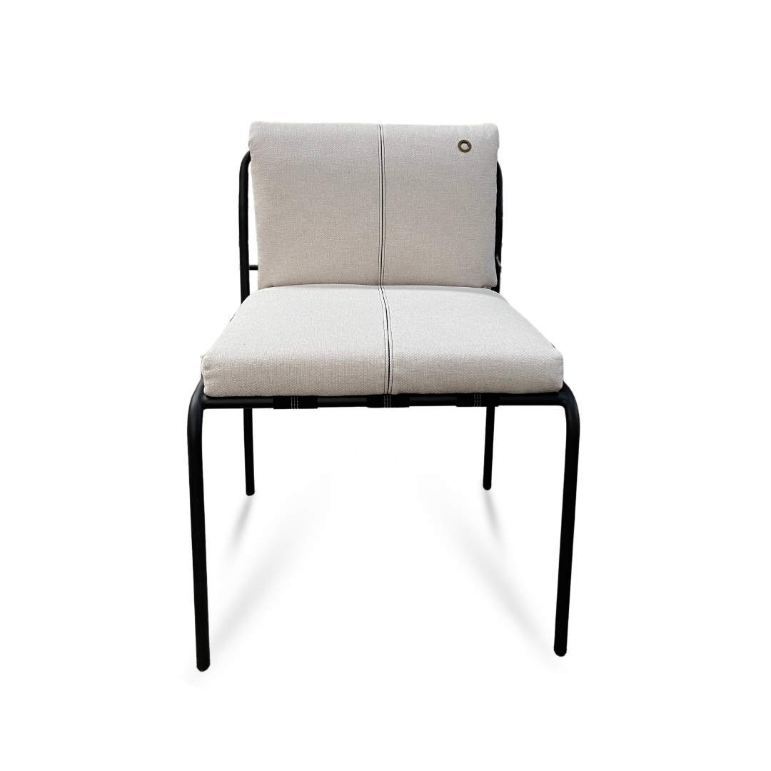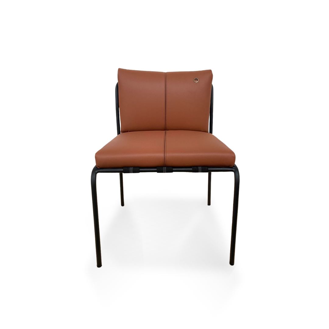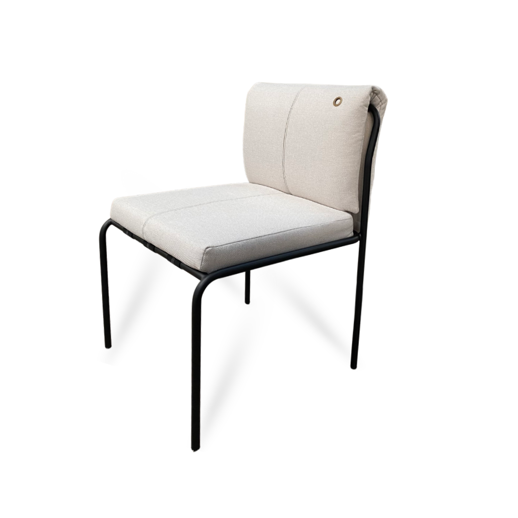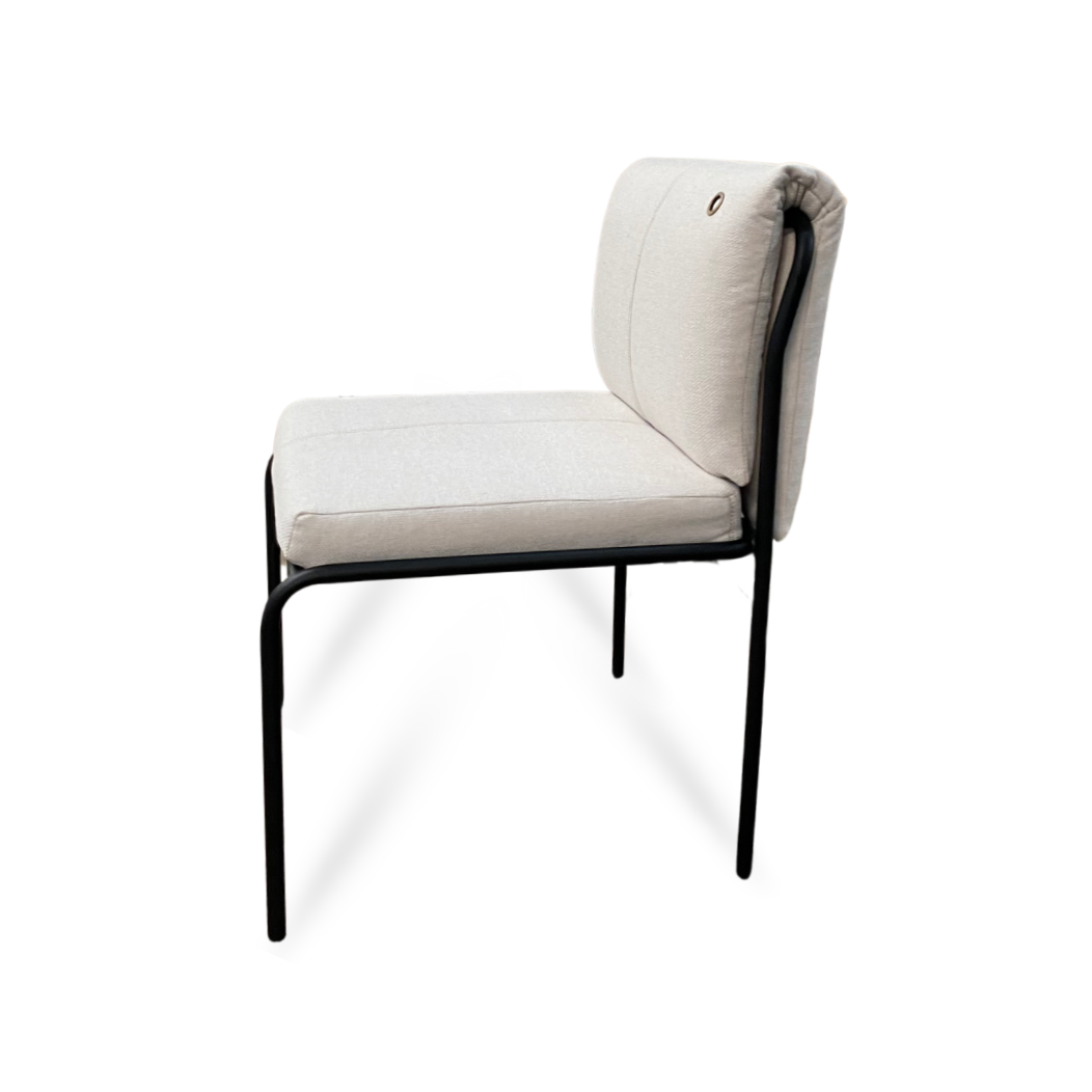 Cadeira com estrutura em aço carbono e pintura epóxi, garantindo resistência, estabilidade e durabilidade. Suas linhas leves em aço carbono e o estofamento versátil em capa valorizam o conforto no uso diário e destacam o design contemporâneo da peça, indicada para salas de jantar e ambientes residenciais.