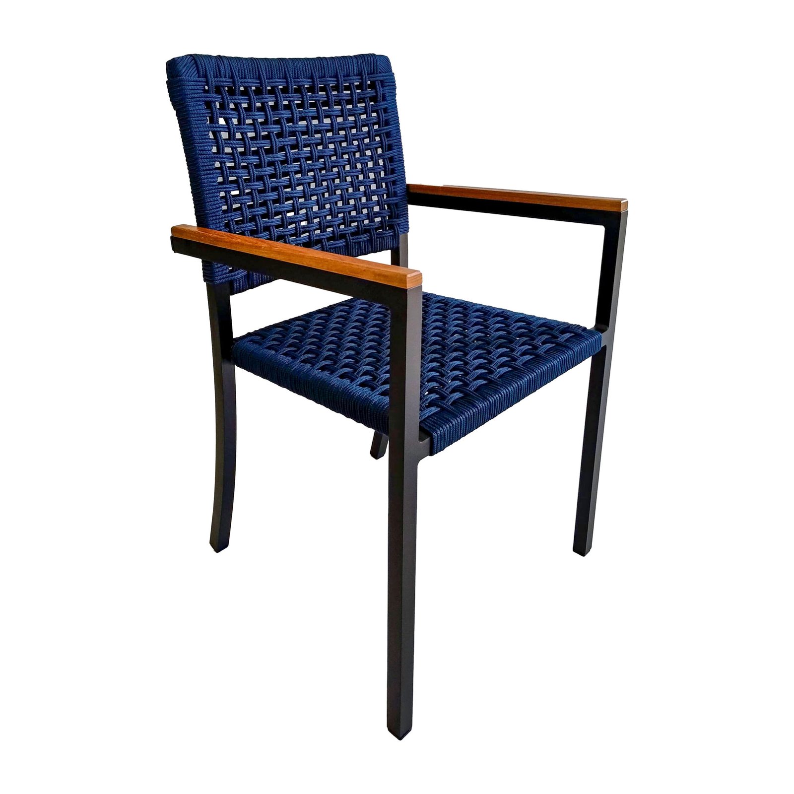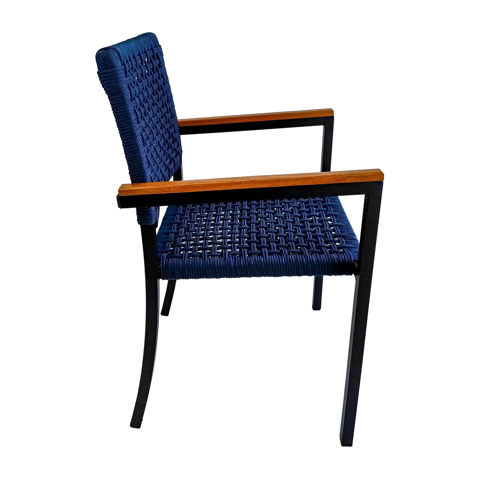 Cadeira Orion combina estrutura em alumínio tubular com pintura eletrostática, assento em corda náutica Senna azulado com proteção UV e braços em madeira envernizada. Seu design exclusivo e medidas amplas garantem conforto e durabilidade. Ideal para varandas, áreas de lazer e casas de campo ou praia, une estilo, funcionalidade e sofisticação em ambientes externos cobertos.