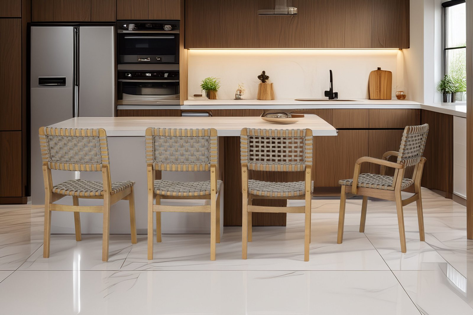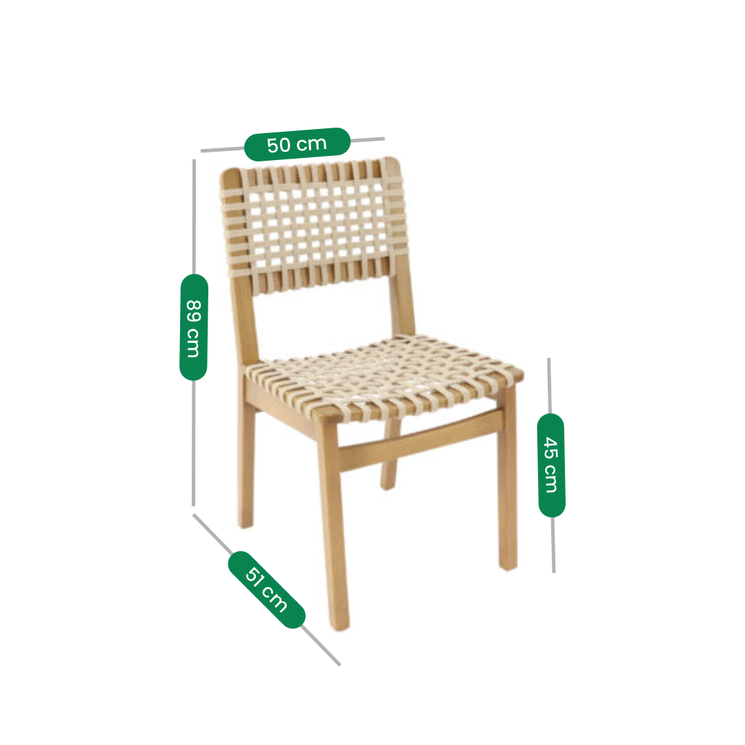 Assento e Encosto: Trançados artesanalmente em corda náutica, resistente às variações climáticas