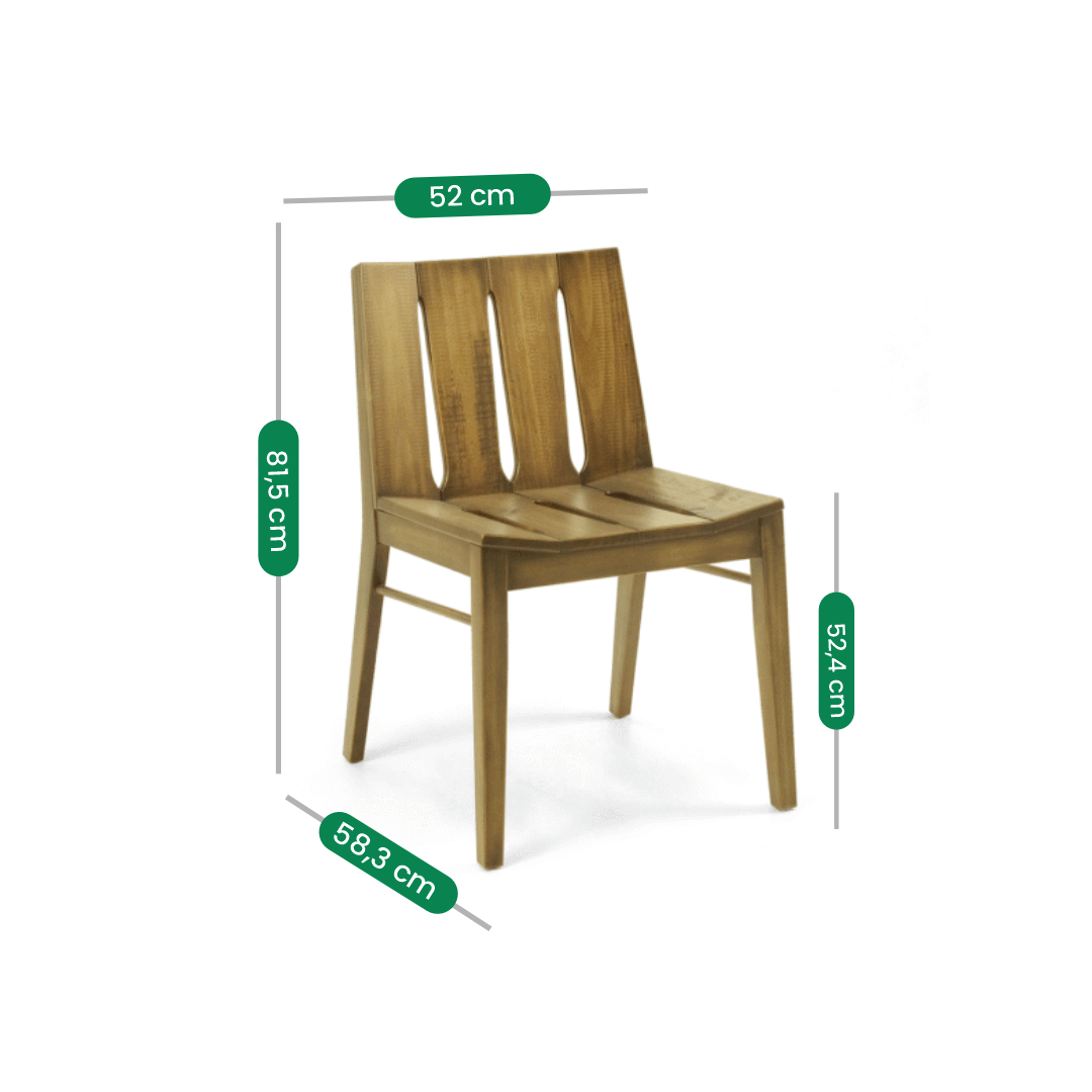 A Cadeira Paty surpreende pelo conforto, com medidas de 52 cm de largura, muito acima da média, oferecendo espaço excepcional para o uso diário. Seu design atemporal alia elegância e resistência, com estrutura em madeira maciça e apoio ergonômico. O acabamento em verniz fosco valoriza a peça, que se adapta facilmente a diferentes estilos de decoração, do rústico ao contemporâneo, tornando-se destaque em salas de jantar e áreas gourmet.