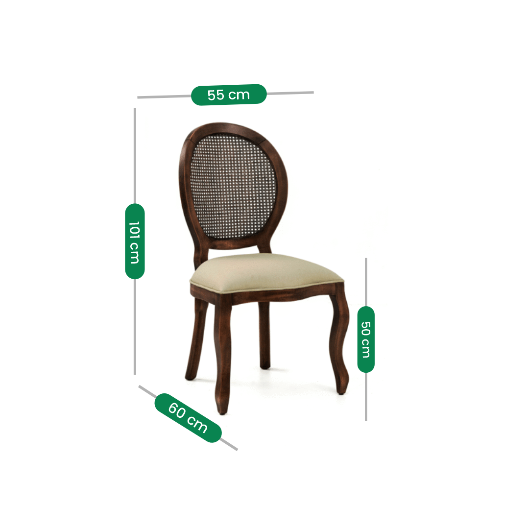 Cadeira Medalhão Luiz XV é uma peça clássica com estrutura em madeira maciça e encosto no formato medalhão com tela natural, unindo elegância e conforto. O assento estofado em espuma de alta densidade proporciona conforto para uso prolongado. Disponível nas tonalidades Oregon, castanho e preta, adapta-se a diversos estilos de decoração. Ideal para salas de jantar, recepções e ambientes sofisticados.