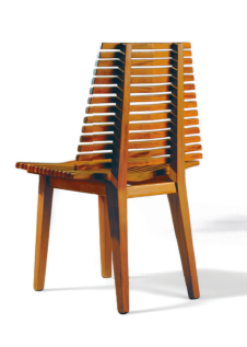 Encosto formado por ripas selecionadas, alinhadas manualmente.