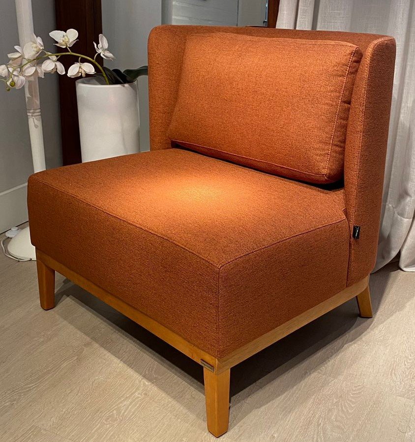 A Poltrona Antônia oferece conforto envolvente e elegância em uma peça de alto padrão. Suas medidas amplas valorizam salas e halls com presença marcante. O assento com percintas elásticas, espuma soft D-26 e manta de fibra, aliado à almofada solta em fibra de silicone, garante aconchego e ergonomia. Base em madeira jequitibá confere resistência e beleza natural. Entrega especializada em móveis.