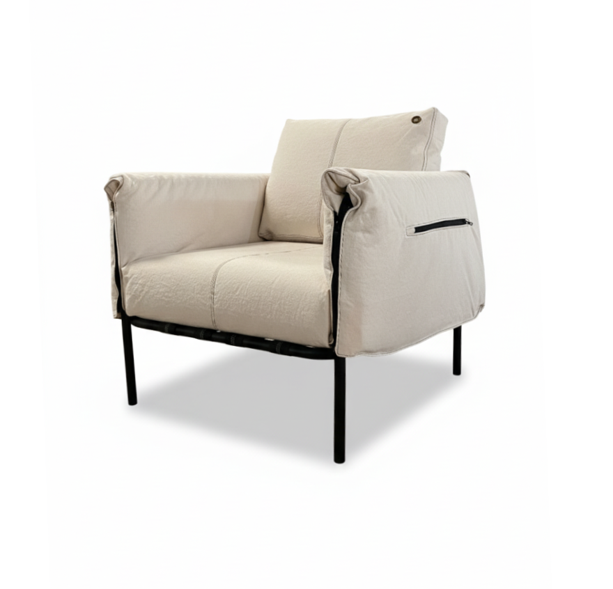 Poltrona com desenho contemporâneo, equipada com bolsos laterais funcionais e capa removível com fechamento em zíper, facilitando a manutenção e o uso diário. Desenvolvida para oferecer conforto consistente aliado à resistência estrutural.