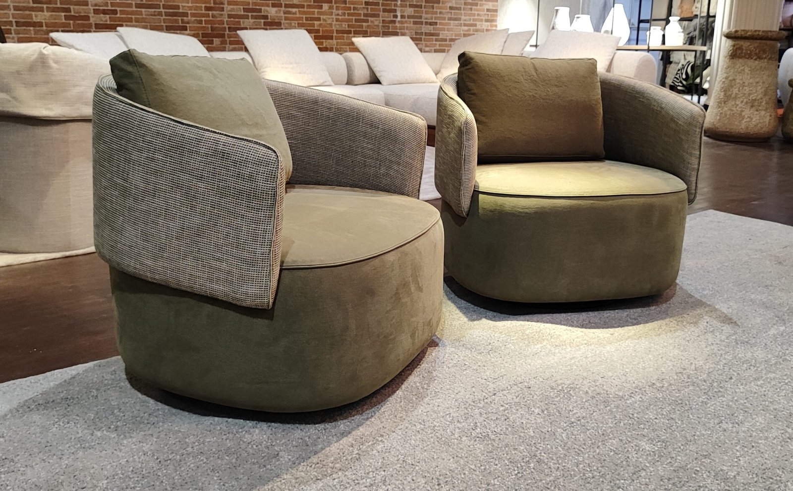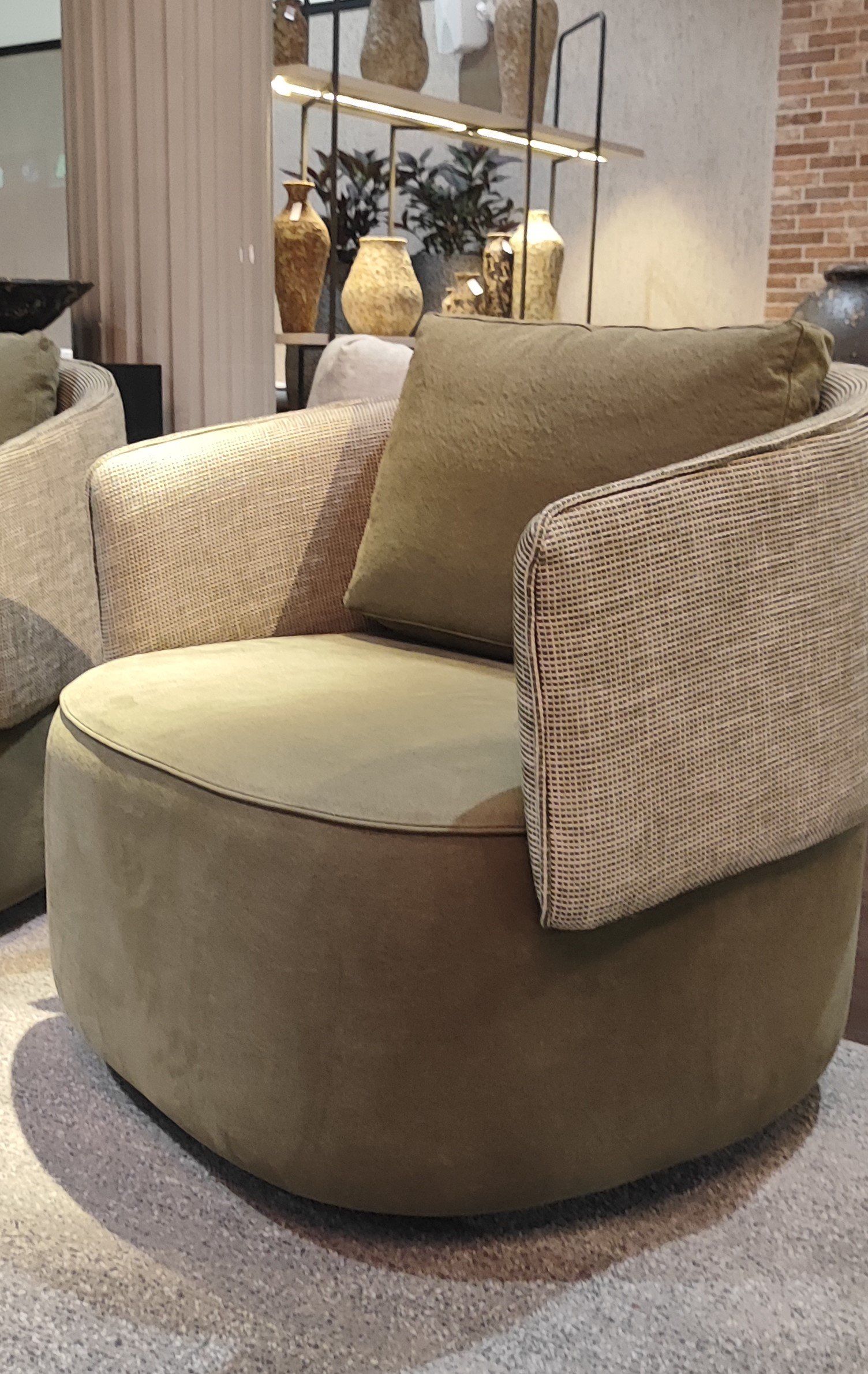 A Poltrona Ophelia apresenta um desenho equilibrado que valoriza conforto, proporção e estética contemporânea. Seu estofamento macio, aliado à base giratória, proporciona praticidade no uso diário e fluidez visual para diferentes composições de ambiente. Os materiais empregados garantem resistência, estabilidade e uma experiência de uso agradável.