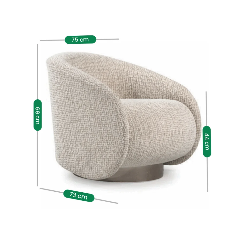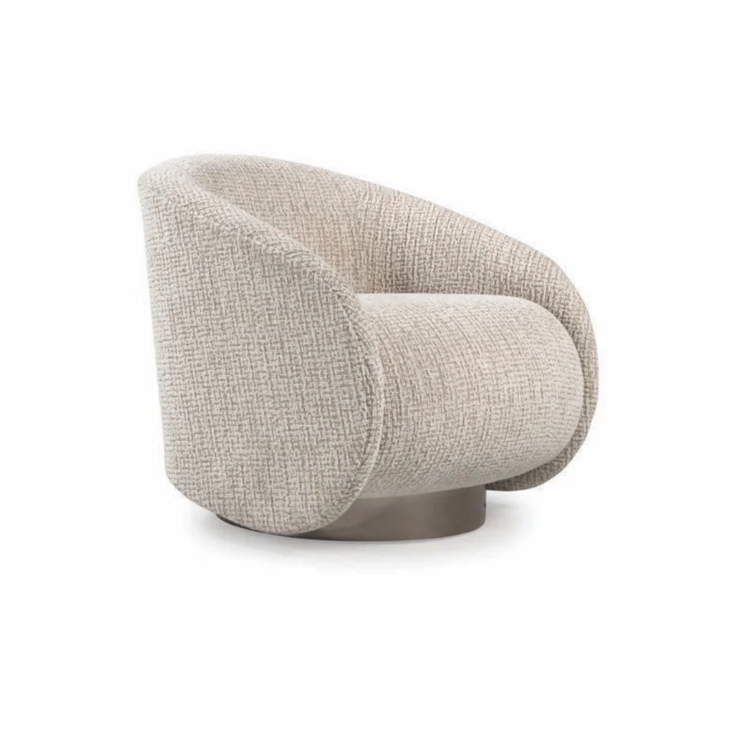 A Poltrona Kalla giratória Escal impressiona pelo design exclusivo de seu braço, que desce em direção ao chão, criando uma silhueta elegante e moderna. O assento curvado transmite conforto e acolhimento, convidando ao relaxamento. Disponível nas versões fixa ou giratória, conta com base em cilindro metálico que adiciona luxo e presença.
