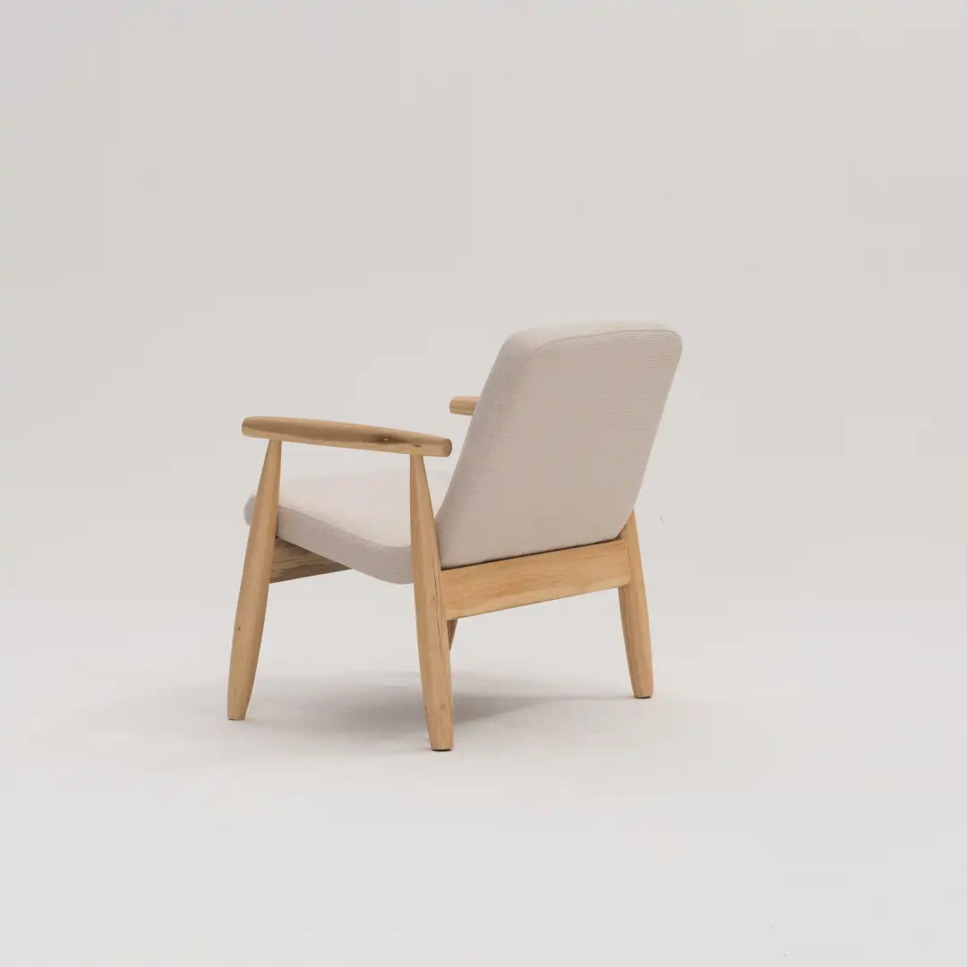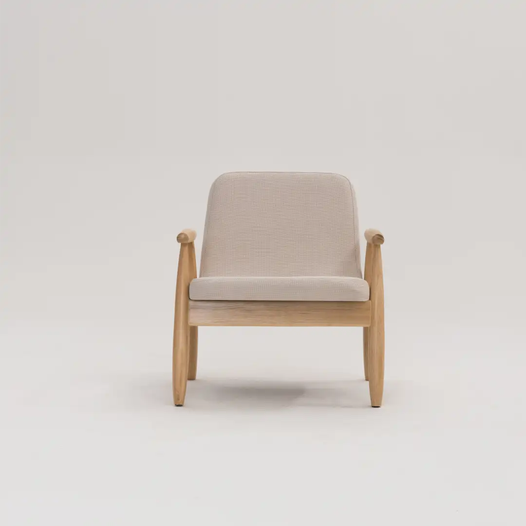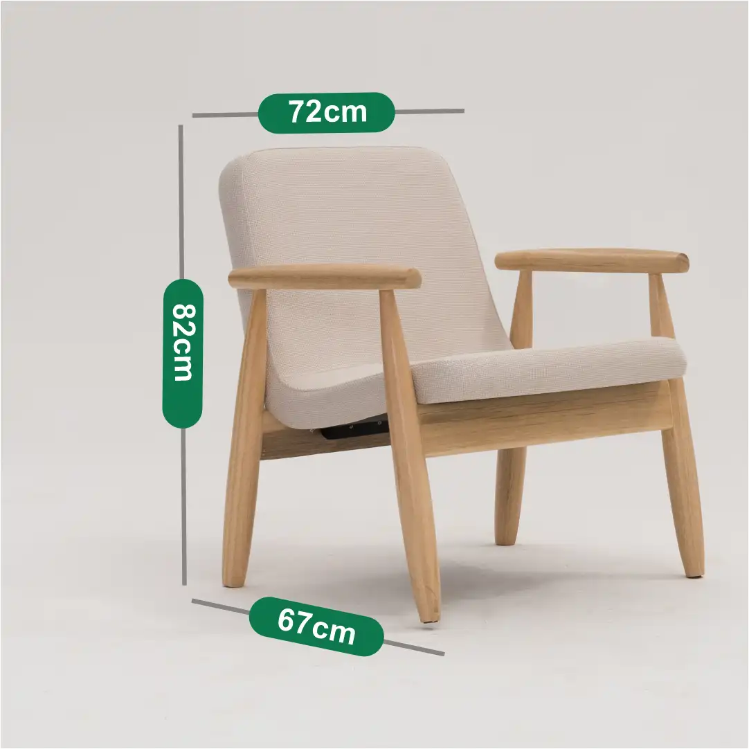 – Braços em madeira aparente com acabamento refinado.