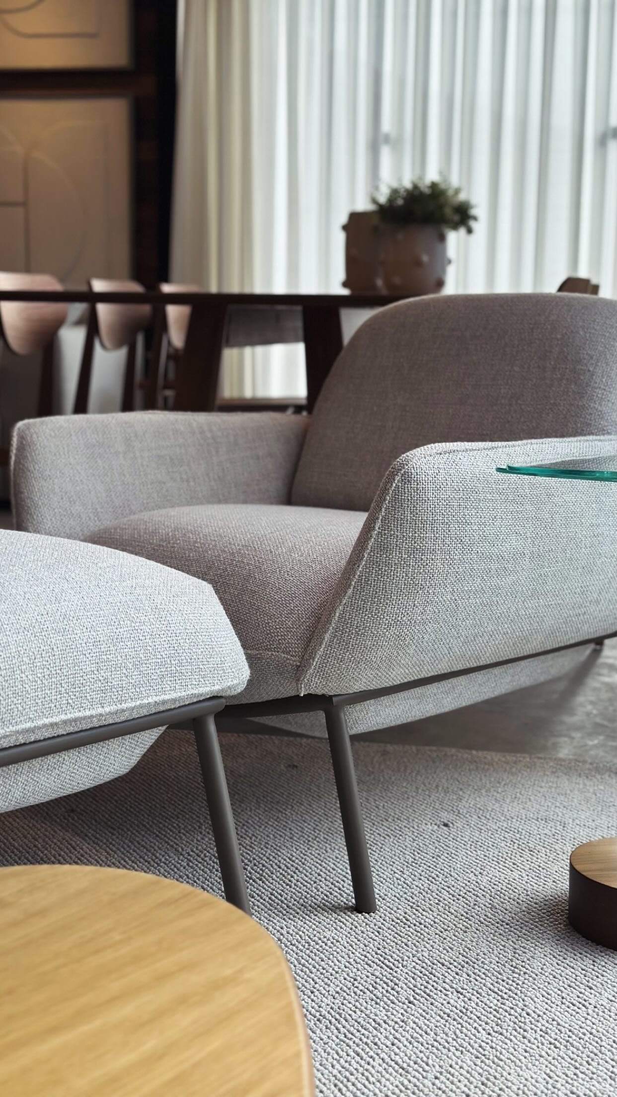 A Poltrona Minke traz a fluidez das formas inspiradas na natureza. Seu design faz referência às barbatanas da baleia Minke, que assumem o papel de braços, criando uma estética leve e orgânica. As linhas envolventes valorizam o conforto e conferem presença marcante ao ambiente.