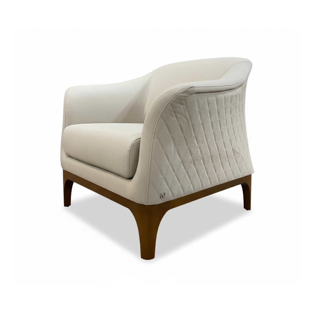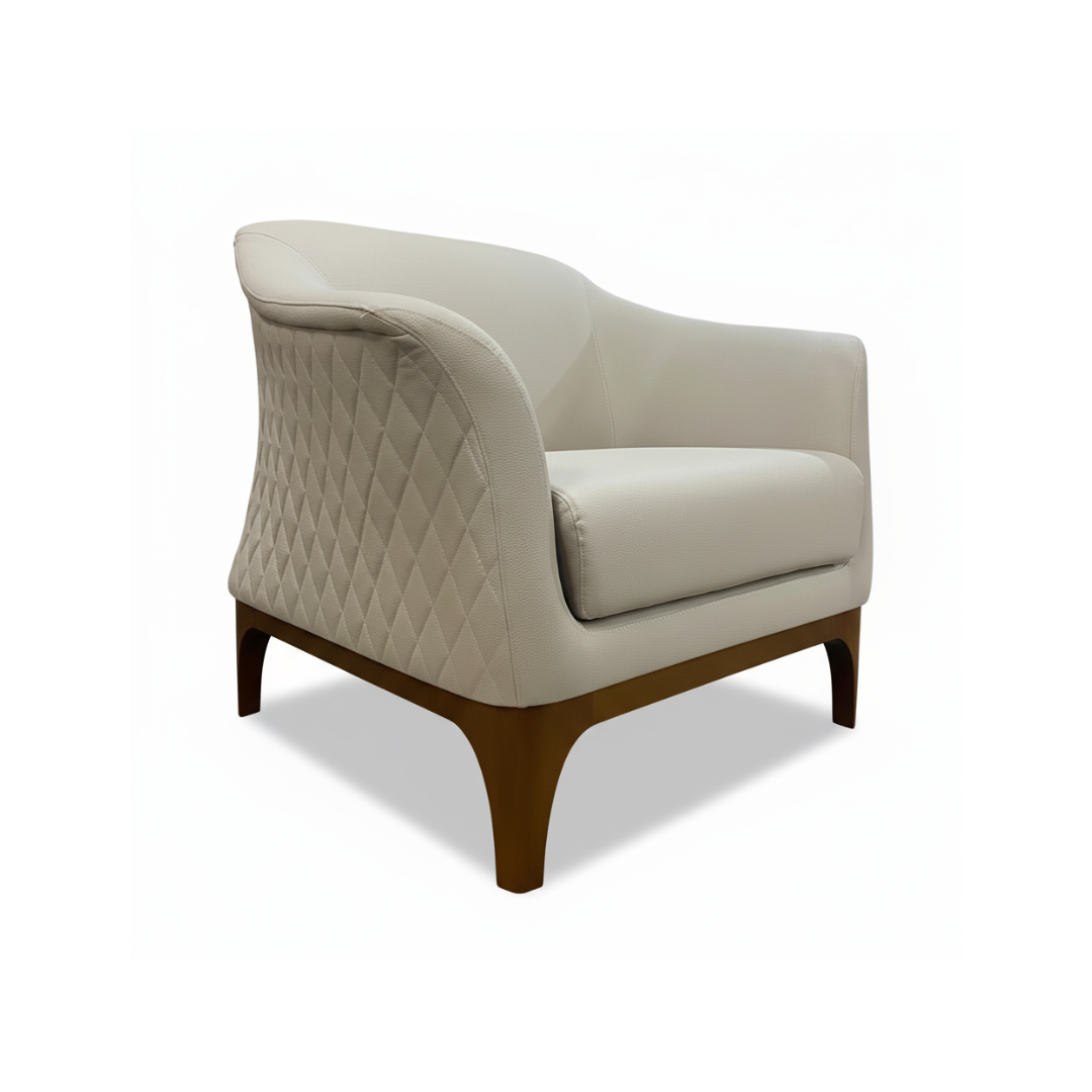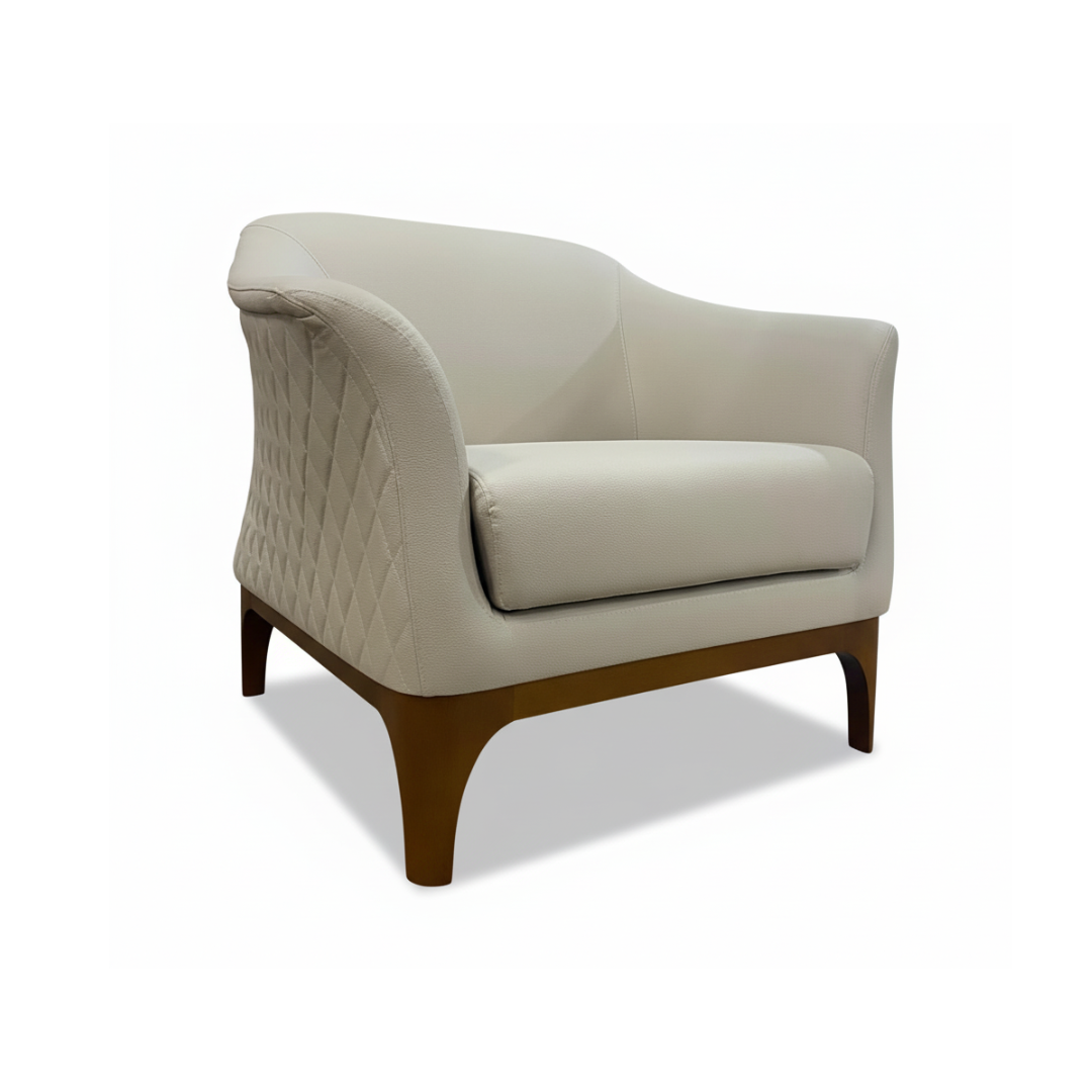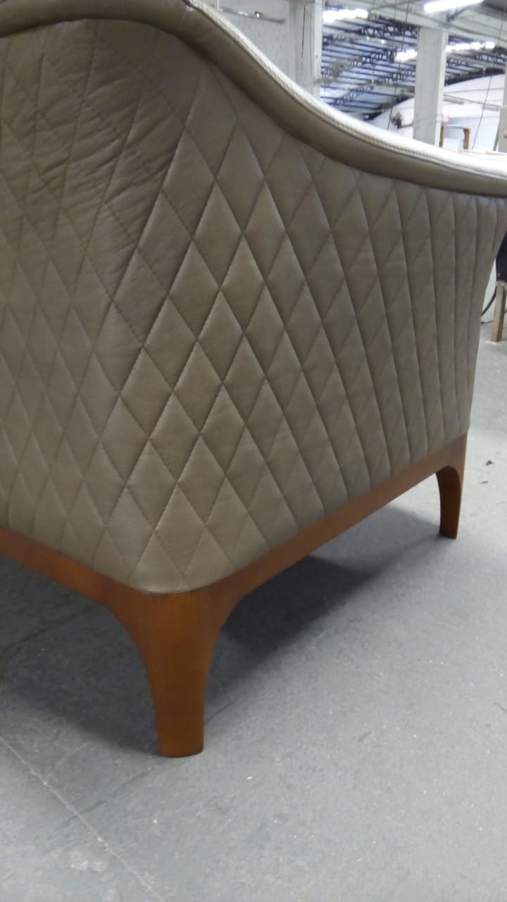 Clássica e de presença marcante, a Poltrona Tiffany possui design imponente com detalhes em matelassê que envolvem toda a parte externa, valorizando o acabamento e o visual da peça. A base em madeira reforça seus traços elegantes, resultando em uma poltrona que se destaca pela estética atemporal e pelo conforto bem construído.