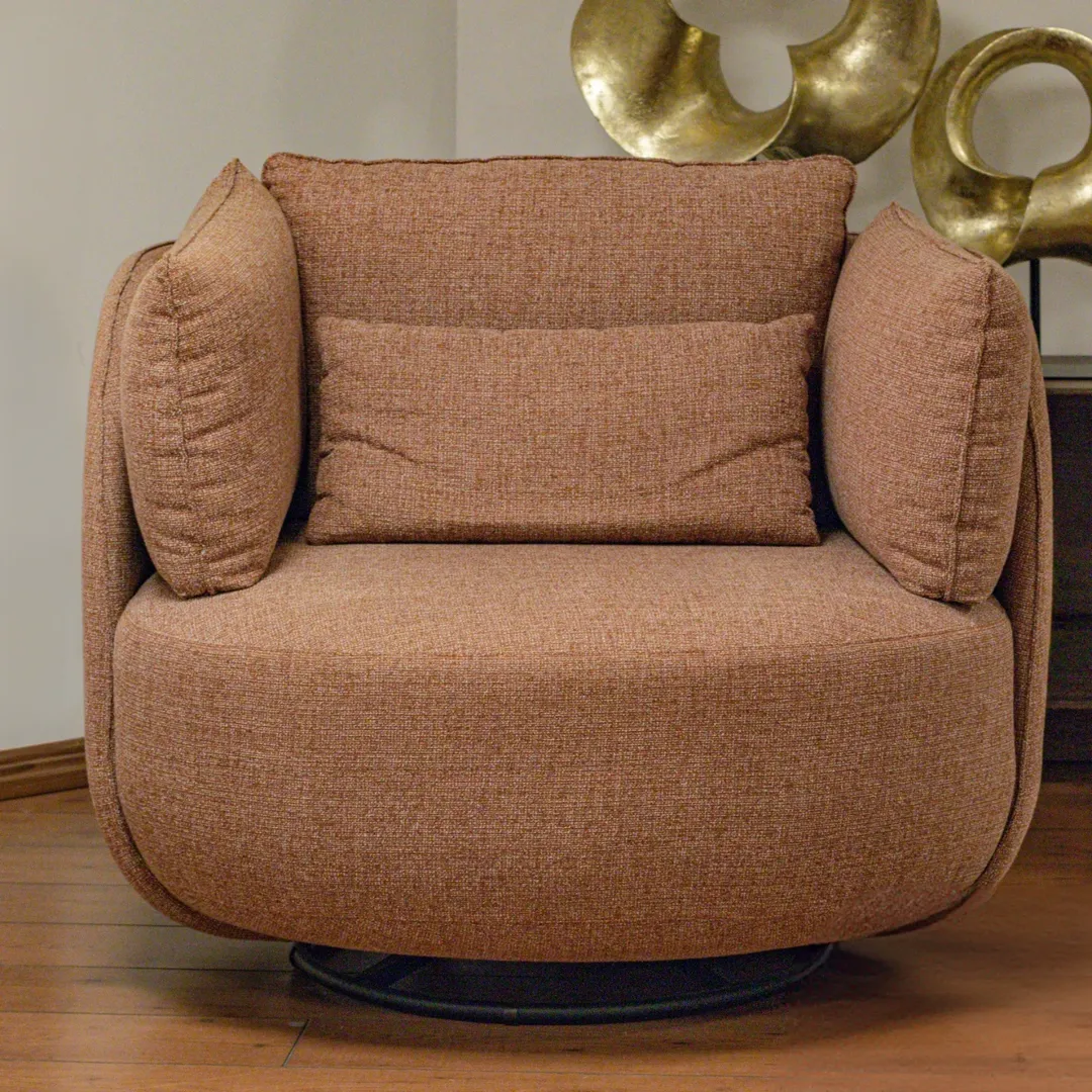 Poltrona com excelente proposta de conforto, desenho orgânico e curvas que valorizam a estética do ambiente. Disponível com opção de base giratória, oferece funcionalidade e bem-estar para o uso diário.