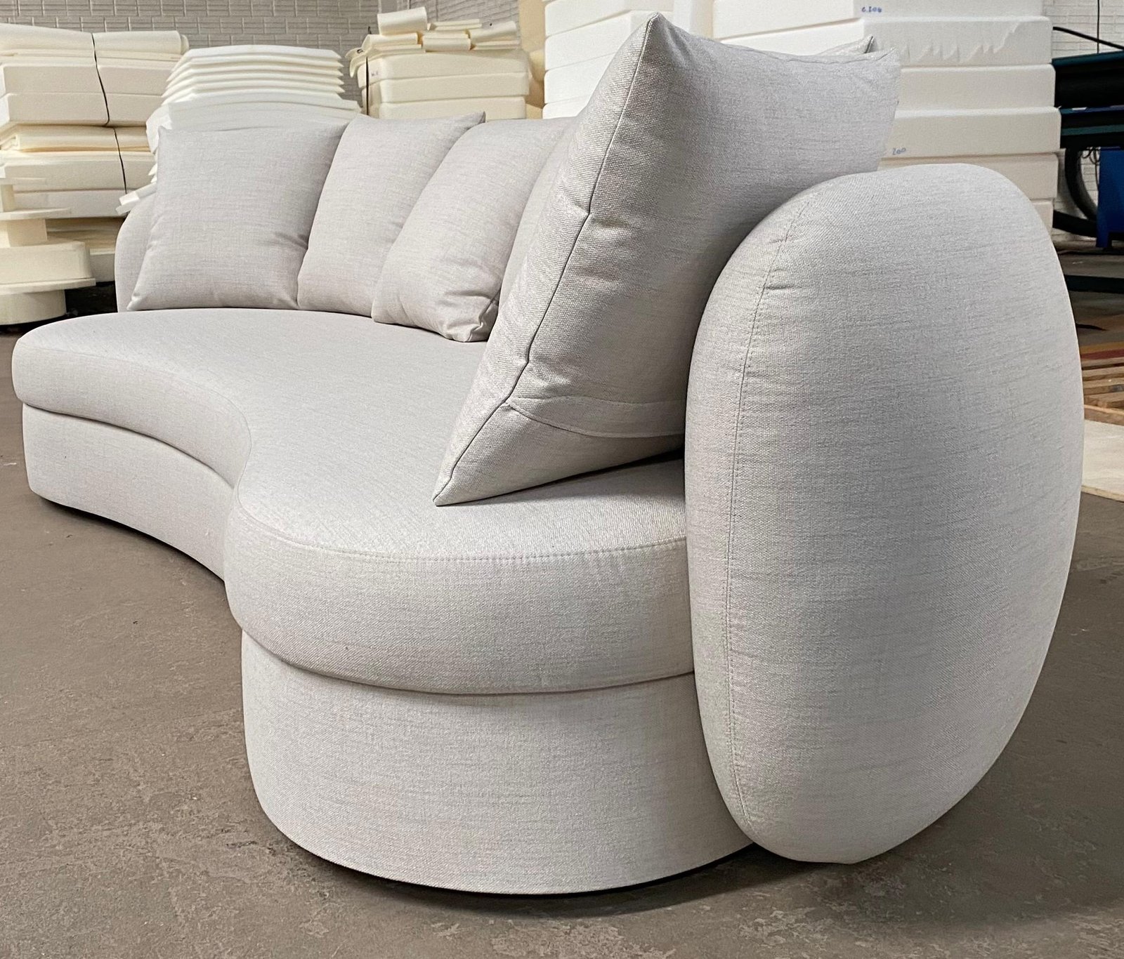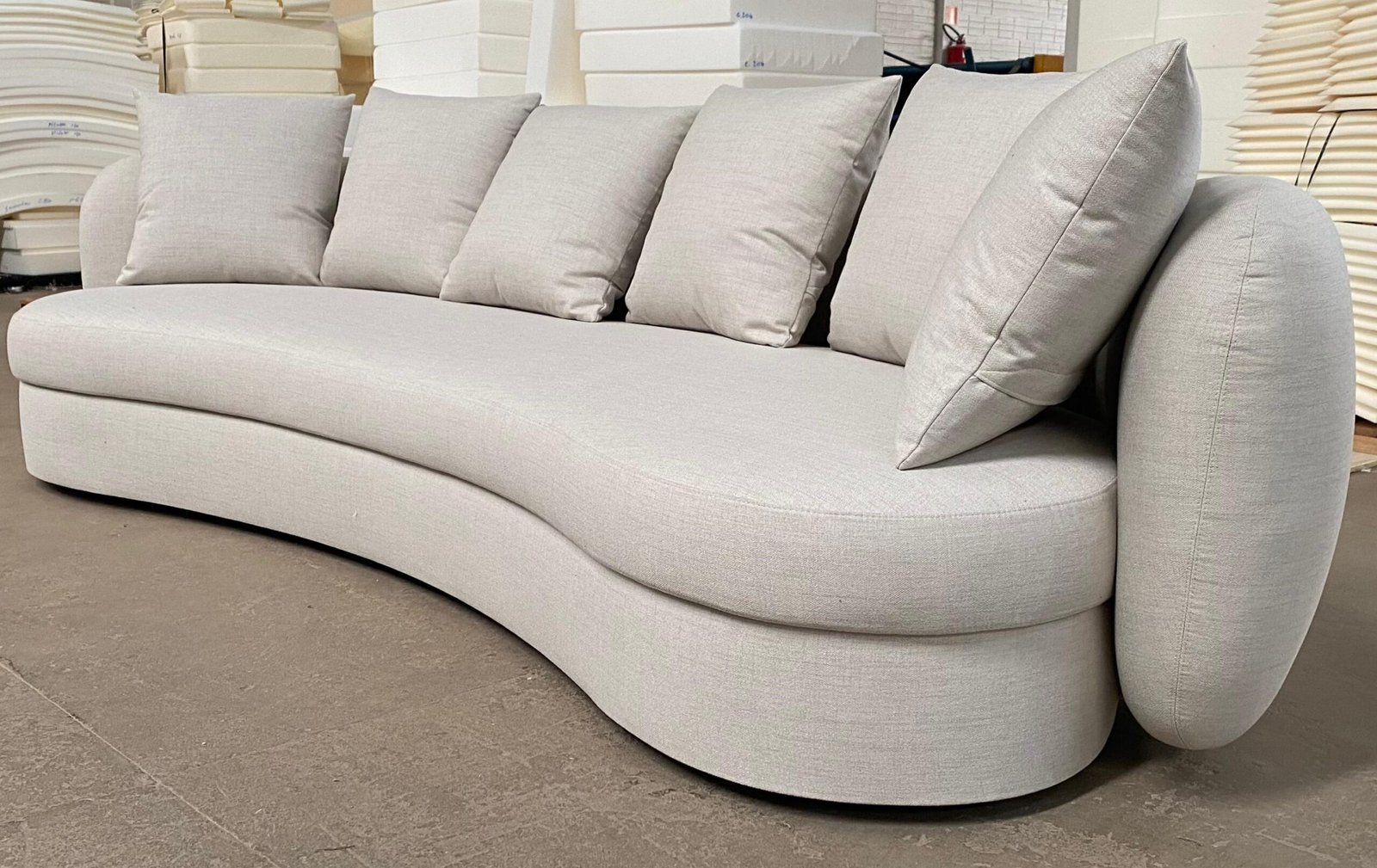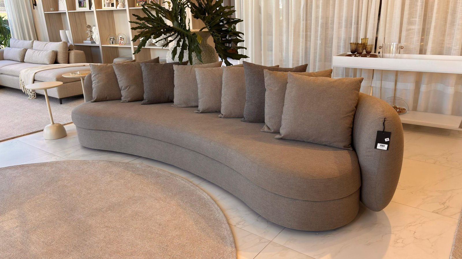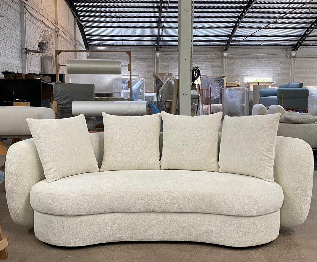 O Sofá Lugo apresenta design orgânico com contorno marcante, caracterizado por curvas contínuas e formas arredondadas que se estendem inclusive para as costas. Seu desenho escultural valoriza o ambiente, oferecendo conforto estrutural aliado a uma estética contemporânea e fluida.